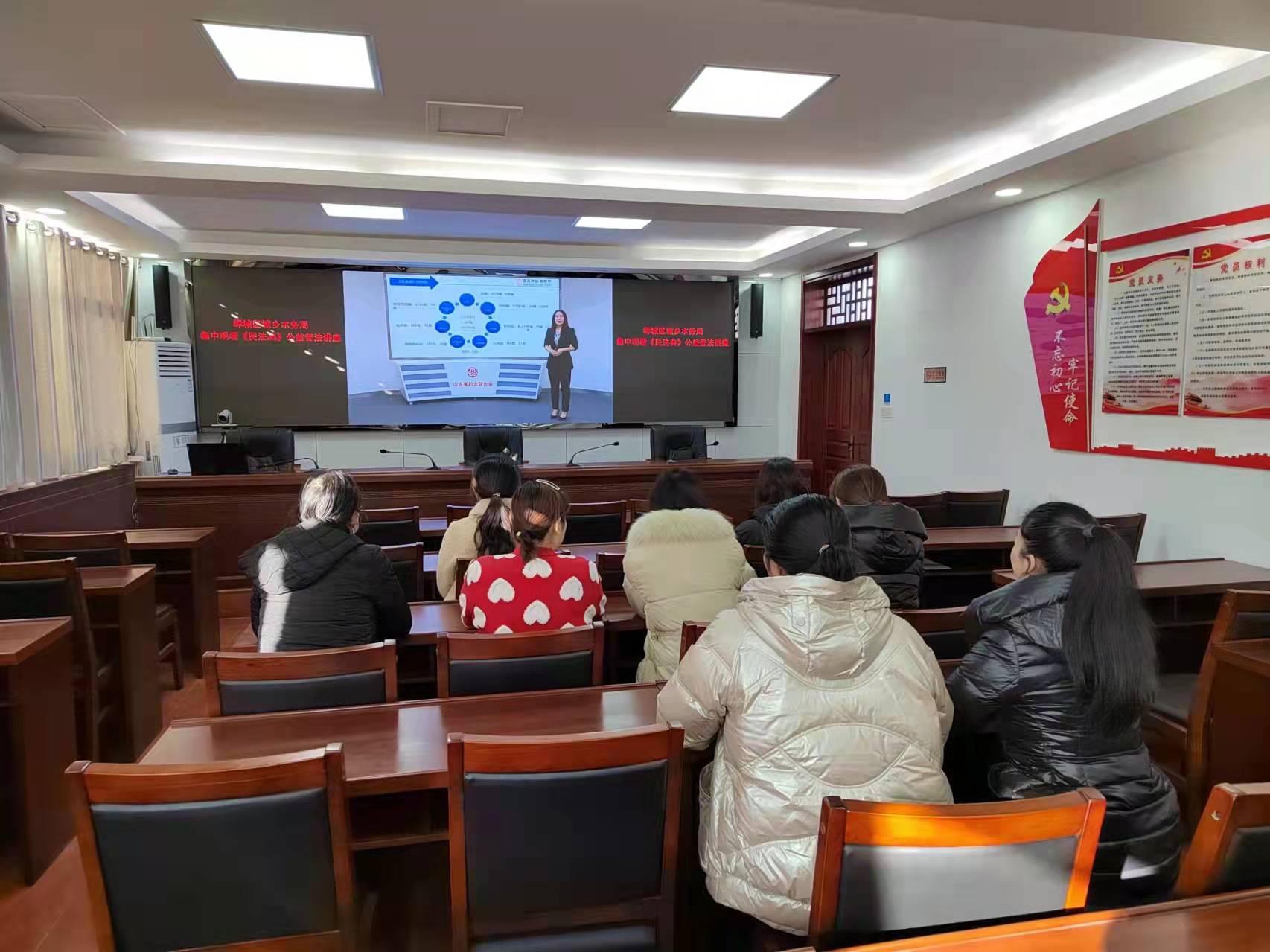 为进一步提升全局女干部职工维权法治意识和服务水平,365bet正版网址_365速度发国际大厅_28365365体育引导妇女群众学法、知法、懂法、守法、用法,12月17日上午,区城乡水务局妇联组织部分女职工集中观看《民法典》公益普法讲座活动。