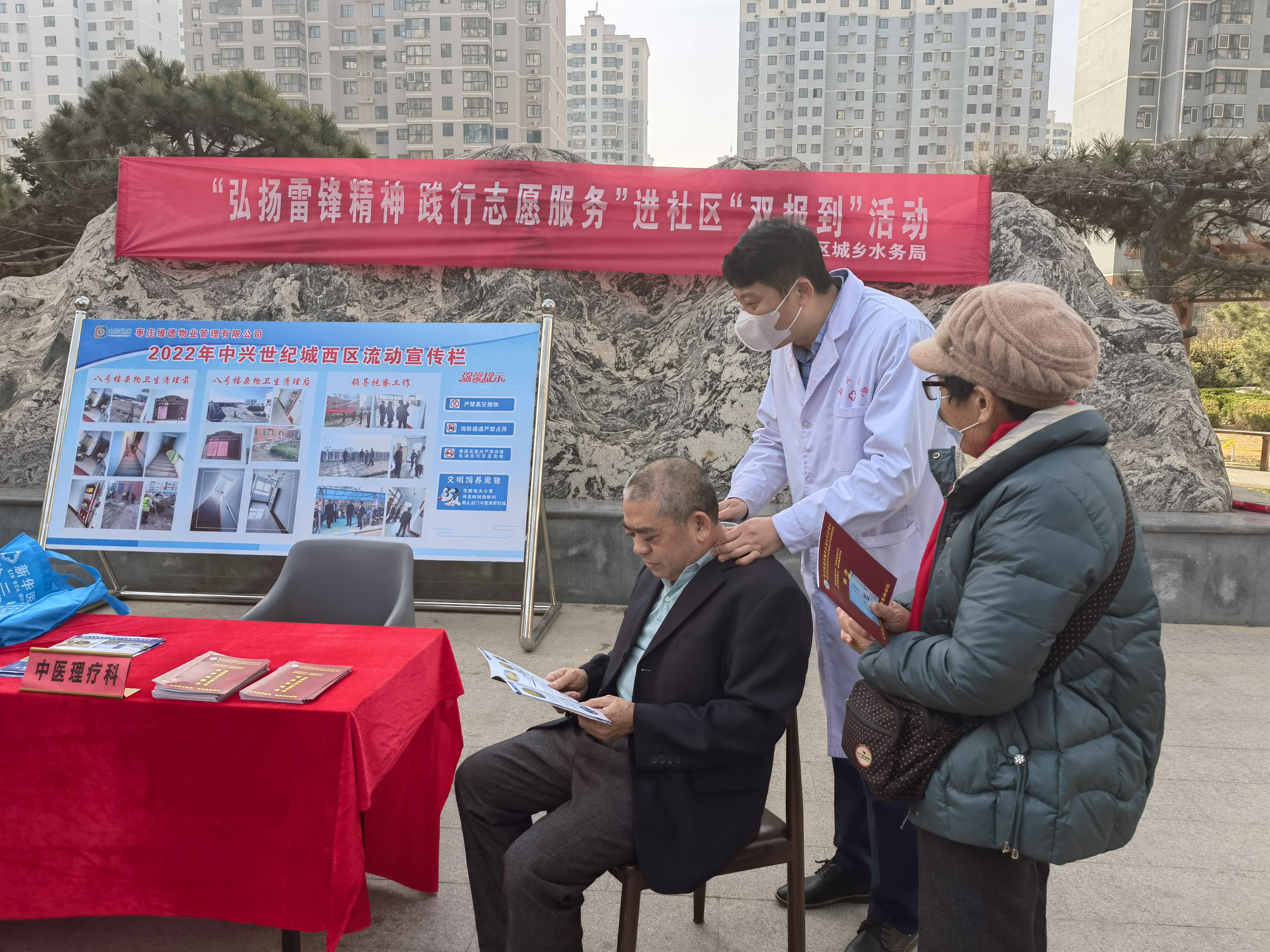 万物复苏春风暖,雷锋精神代代传。3月9日,薛城区城乡水务局联合区新华医院开展了“弘扬雷锋精神 践行志愿服务”主题“双报到”义诊活动,为常庄街道西兴社区居民提供健康义诊志愿服务。活动邀请了新华医院内科、眼科、中医理疗科的医师、专家们,为社区居民开展血糖血压测量、中医切脉、颈部穴位理疗、眼部检查和健康咨询,医务人员耐心地为前来咨询就诊的居民们提供诊疗服务,并叮嘱日常注意事项。同时,区城乡水务局志愿者们向现场群众分发健康小贴士,帮助大家了解健康保健知识。