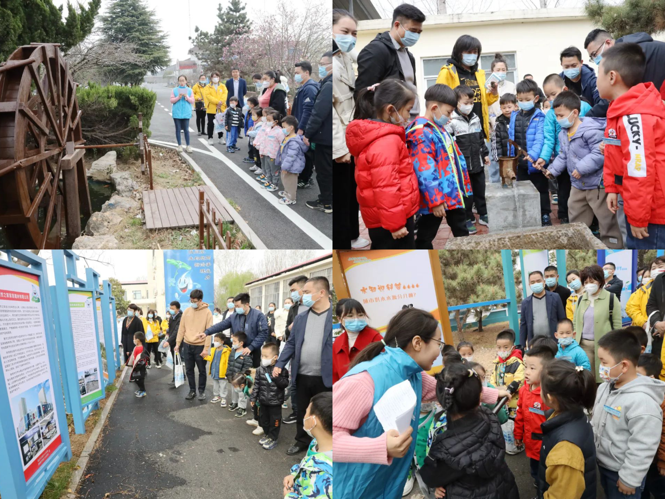 蓝鸽幼儿园的小朋友们在现场讲解员的带领下、在老师和家长陪同下,有序参观空调冷凝水收集系统、雨水花园、雨水收集系统的神奇运作过程,亲身体验水车、压水井的使用方法。参观过程中还设置了猜谜语和节水知识问答环节,小朋友们积极参与、踊跃抢答,现场气氛热烈。同时,幼儿园精心组织孩子们用自己灵巧的小手绘制出一张张精美的节水主题画,生动地表现了“水是生命之源”,向大家传达了珍惜水资源的重要意义。在节水课堂上,通过视频、故事、儿歌等寓教于乐的形式,引导小朋友了解世界水资源匮乏的原因及水资源的重要性,树立节水观念。