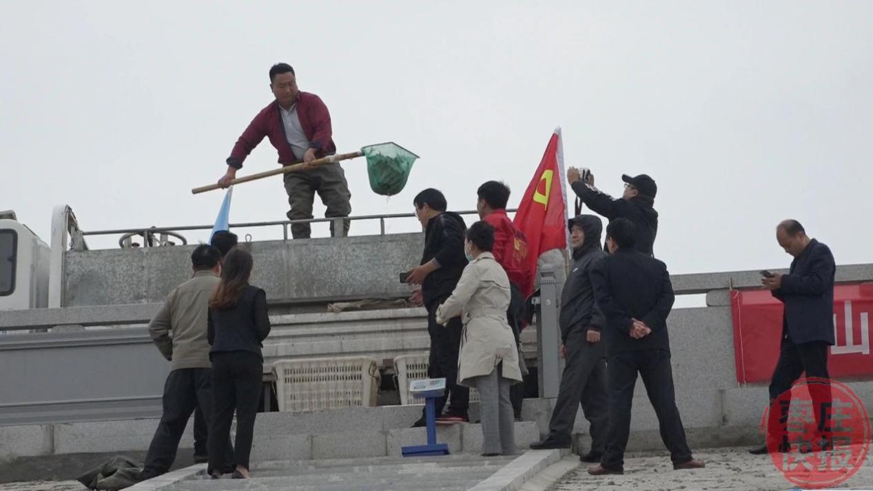 经过工作人员的过磅、丈量、记录等一系列工作,将鱼苗投放到庄里水库中。一时间鱼潮奔涌,自放流点游向各处。预计本次将共放流鲢鱼、鳙鱼等苗种约33万余尾。